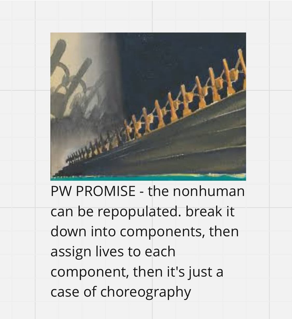‘Motive’ is a character on stage that doesn’t speak, but when it does it speaks an absolute truth. The collective unconscious, dormant, like a quaker meeting.
