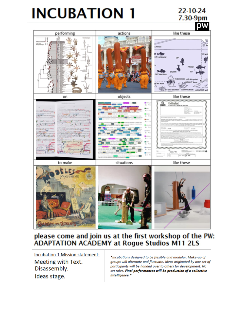By getting them to adapt civic documents into plays. Over 2 months 3 ‘Incubation groups’ will devote themselves fanatically to the adaptation of radically non-dramatic texts (eg civic documents, academic papers, policy slates, Twitter threads, Wikipedia entries etc) into plays.